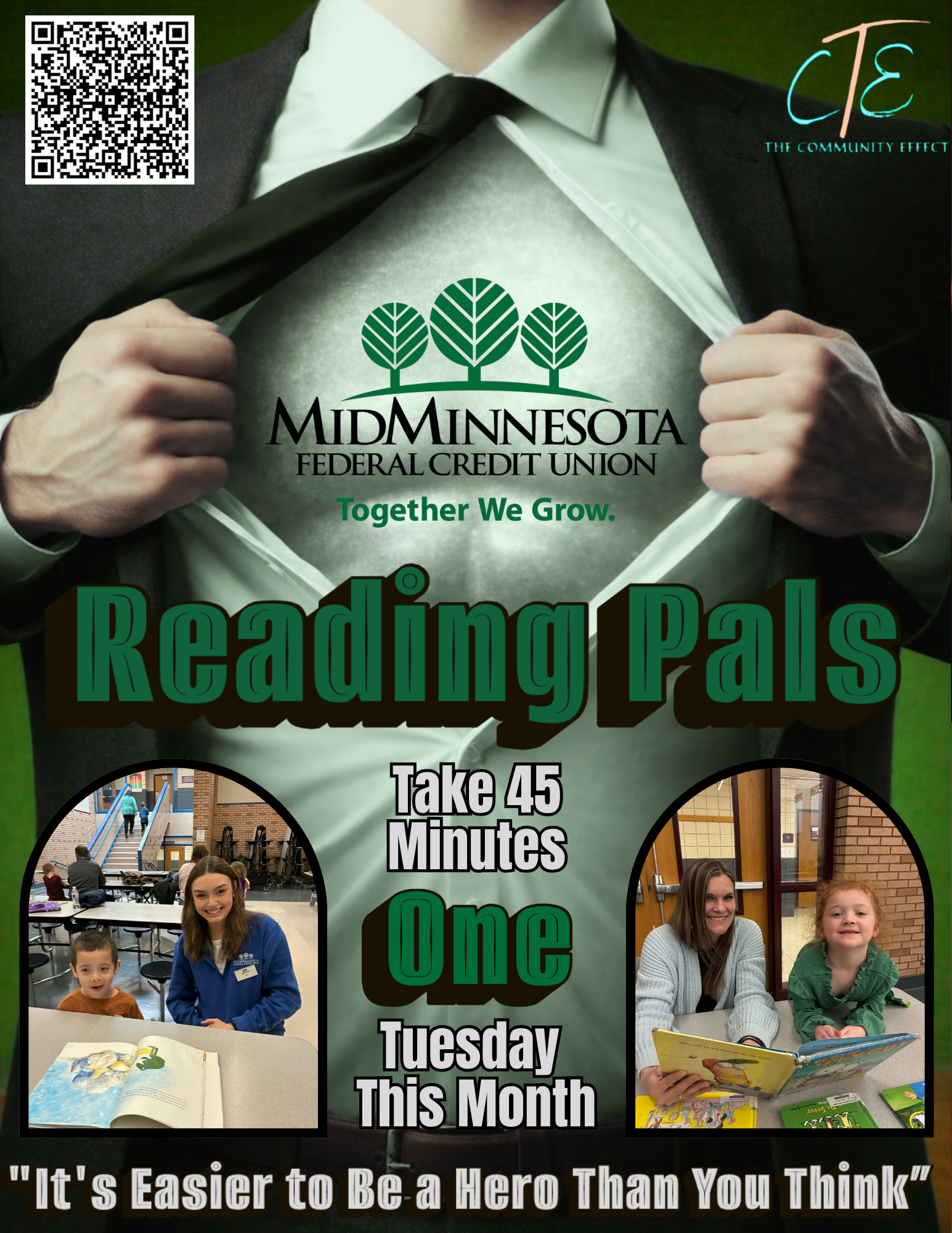 TCE conducted its first ever Littles Literacy on Wednesday, April 10, and Thursday, April 11, at Cuyuna Ranger Elementary School. We were fortunate to have 42 individual volunteers contributed to facilitating and participated in one-on-one reading activities with kindergarten students.